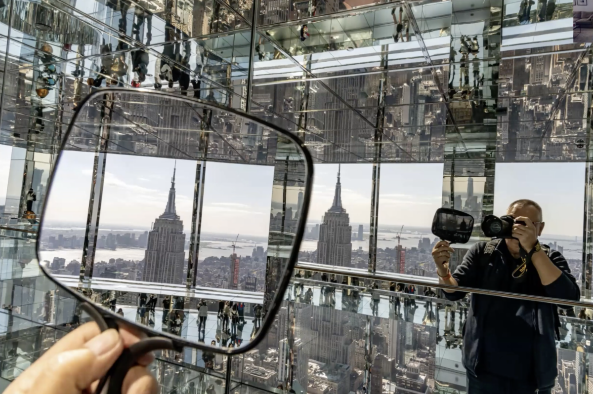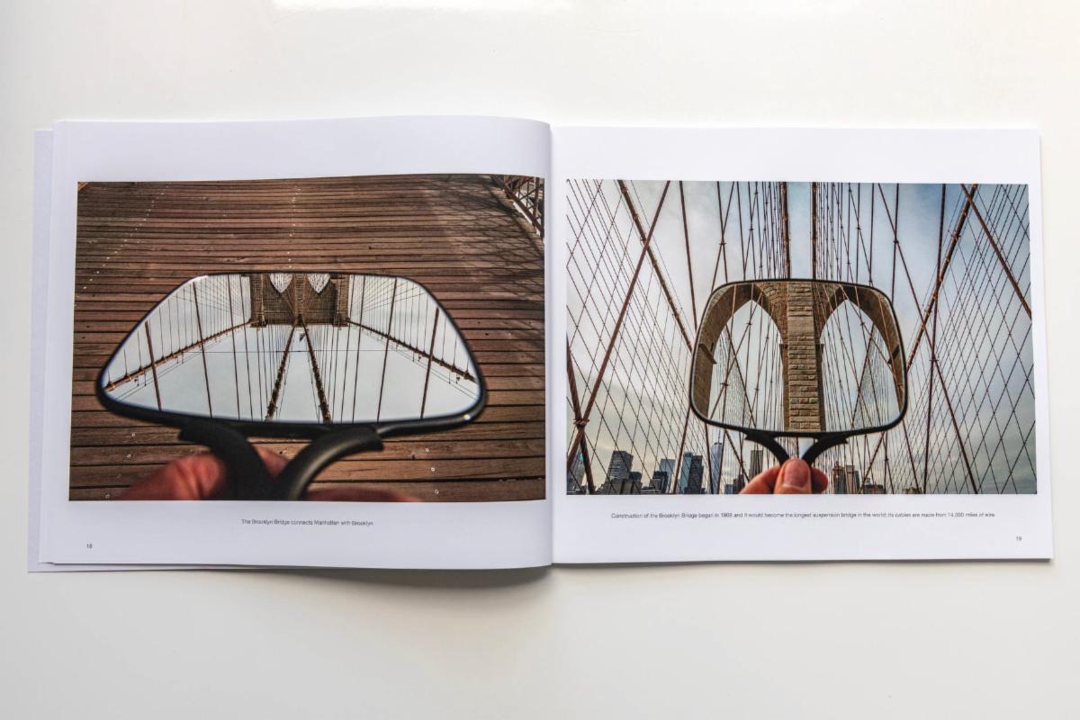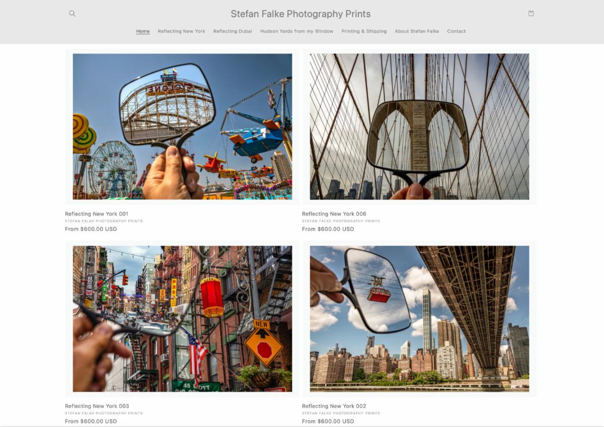 Using a hand held mirror in locations around New York award winning photographer Stefan Falke invites distant buildings, structures or other visuals into the main photo to create a viewing experience that requires a second look. At times the reflection in the mirror becomes the main photo. His goal is to visually loosen up the obvious, to create images that will surprise and intrigue the viewer, and himself.